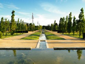 El parc està construït en diverses fases, respectant la vegetació preexistent. La planta és triangular, en forma i en àmbits diversos pel que fa a les aplicacions i funcions es poden distingir: hi ha una zona central presidit per un gran canal, que separa dues carreteres connectades per diversos ponts, ideals per passejar.