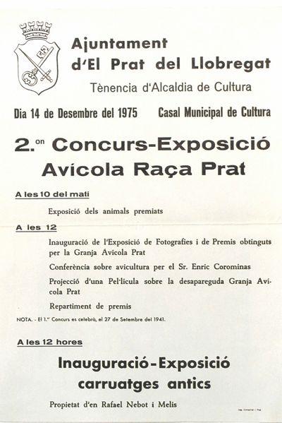 La revisió el 14:51, 3 des 2011 per Frange (discussió | contribucions) (Cartell de la 2a Fira Avícola de la Raça Prat Extret del [http://www.economia.elprat.cat/galeries_resultat_cerca_1/_CAFjuKR7gbXpfkqnpU8DXeYYYCCFkkmGDCvUmK92aZWeK_NAmiuYeg recull de cartells de la Fira Avícola] al web del [[Centre de Promoció Econ)